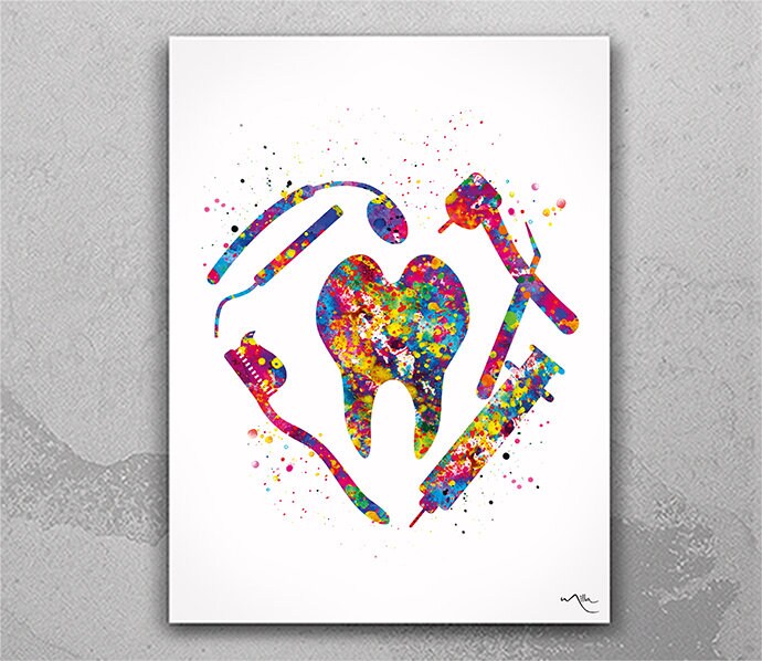 Dental Art Watercolor Print Tooth Fairy Dentist Poster Teeth Etsy